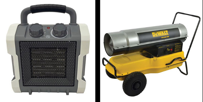 Today's Portable Heaters come in various configurations (tower, tabletop, torpedo, wheeled, hand-carried) and in various powering options (electricity, natural gas, propane, diesel, kerosene). Previously rated only by BTUs of output, they're now also rated via the square footage that they can warm. Some portables suited to farmstead shop and machinery-maintenance areas include (1) the forced-air type that uses one of the liquid fuels to fire the a high-output burner and run a high-velocity fan to distribute heat from; (2) the forced-air radiant type, which consists of a radiant heating element along with a fan that circulates warmed air; and (3) the electric forced-air type. which may require a 240-volt circuit to both heat the element and run the fan to distribute the warmed air.